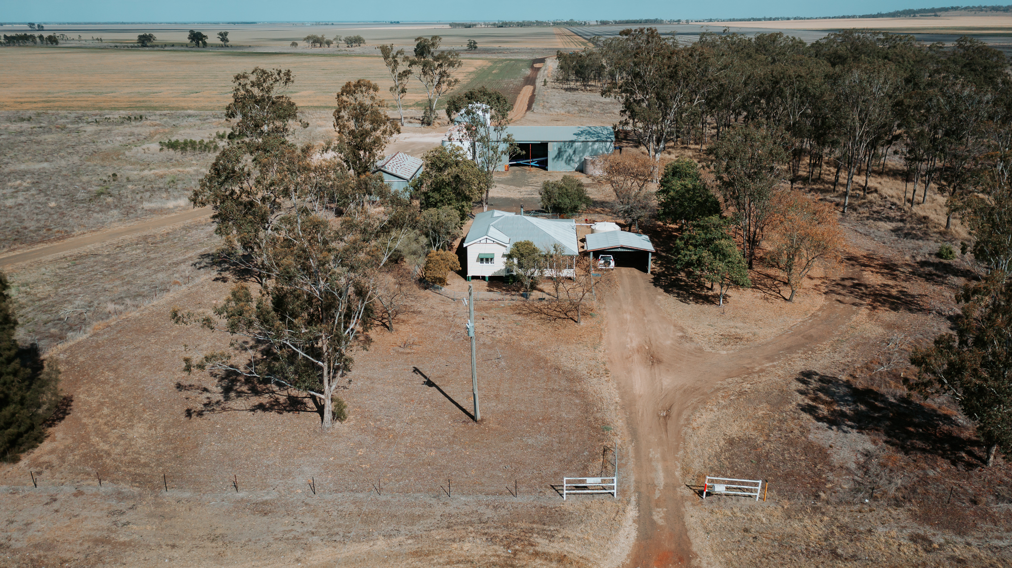 • Single phase rural power connected to both residences and sheds.