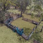 Solid wooden cattle yards with Warwick vet crush and loading ramp (scales not included).