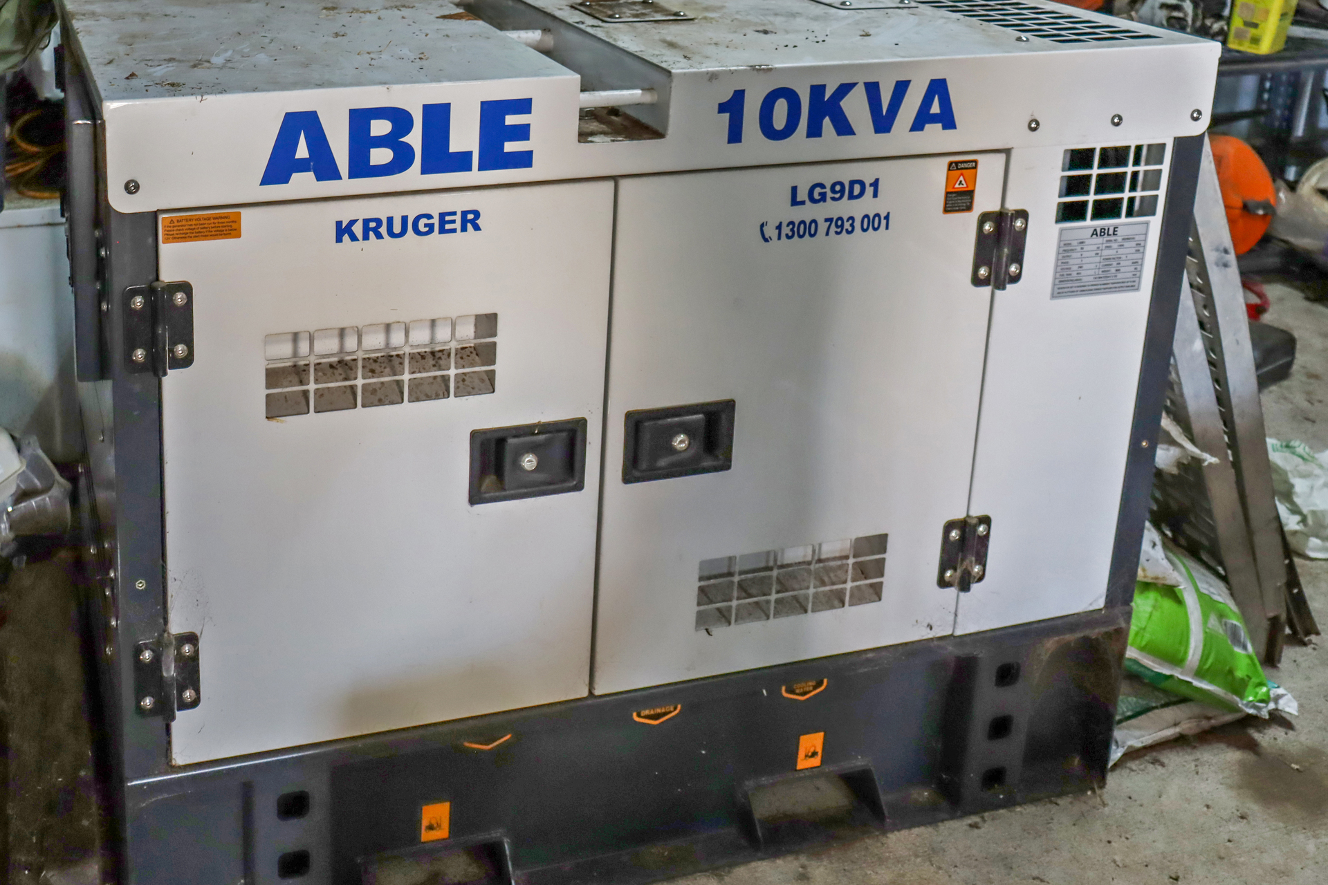 • 10KVA Able Kruger diesel generator.