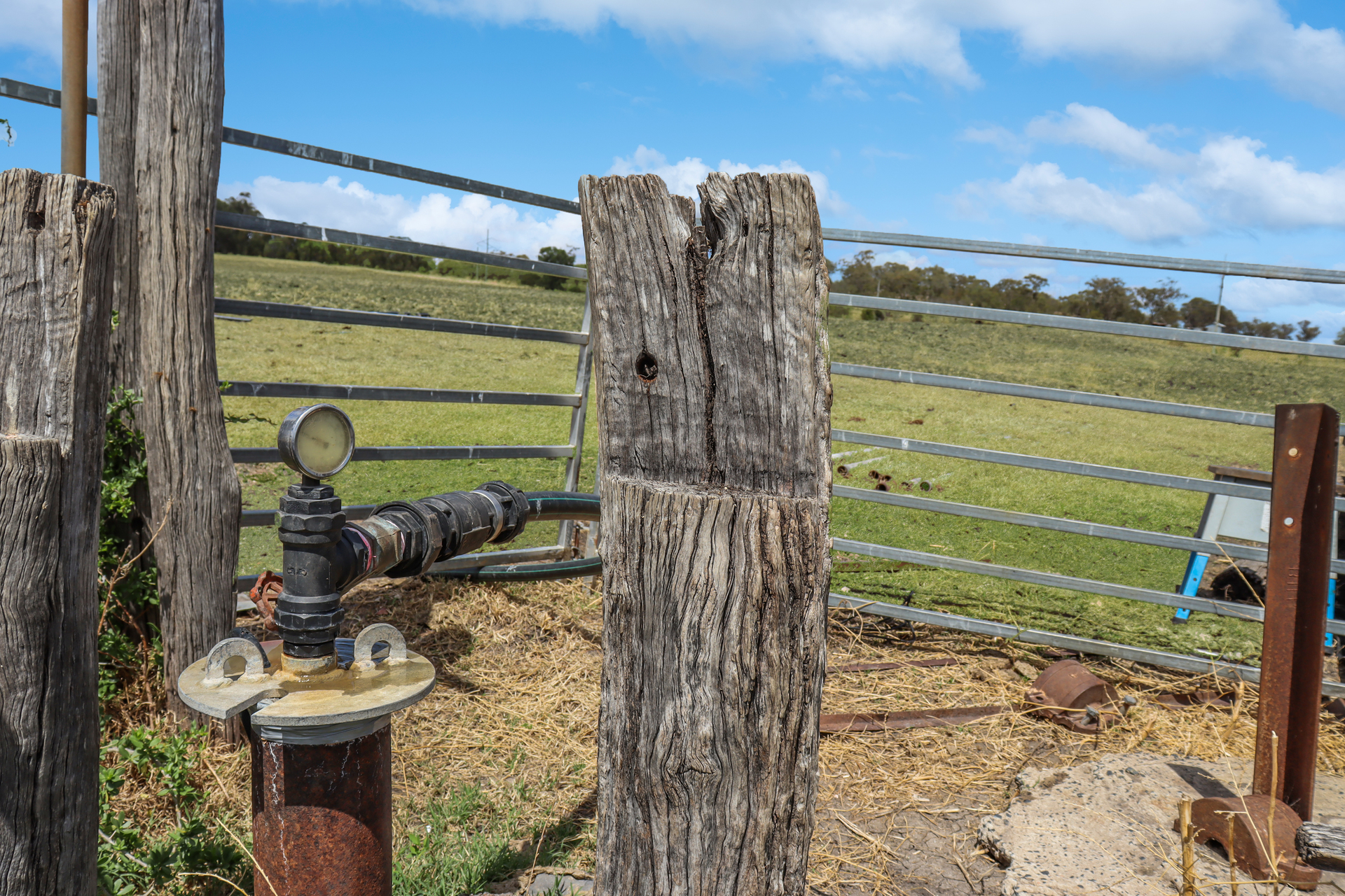 Solid wooden cattle yards with Warwick vet crush and loading ramp (scales not included).