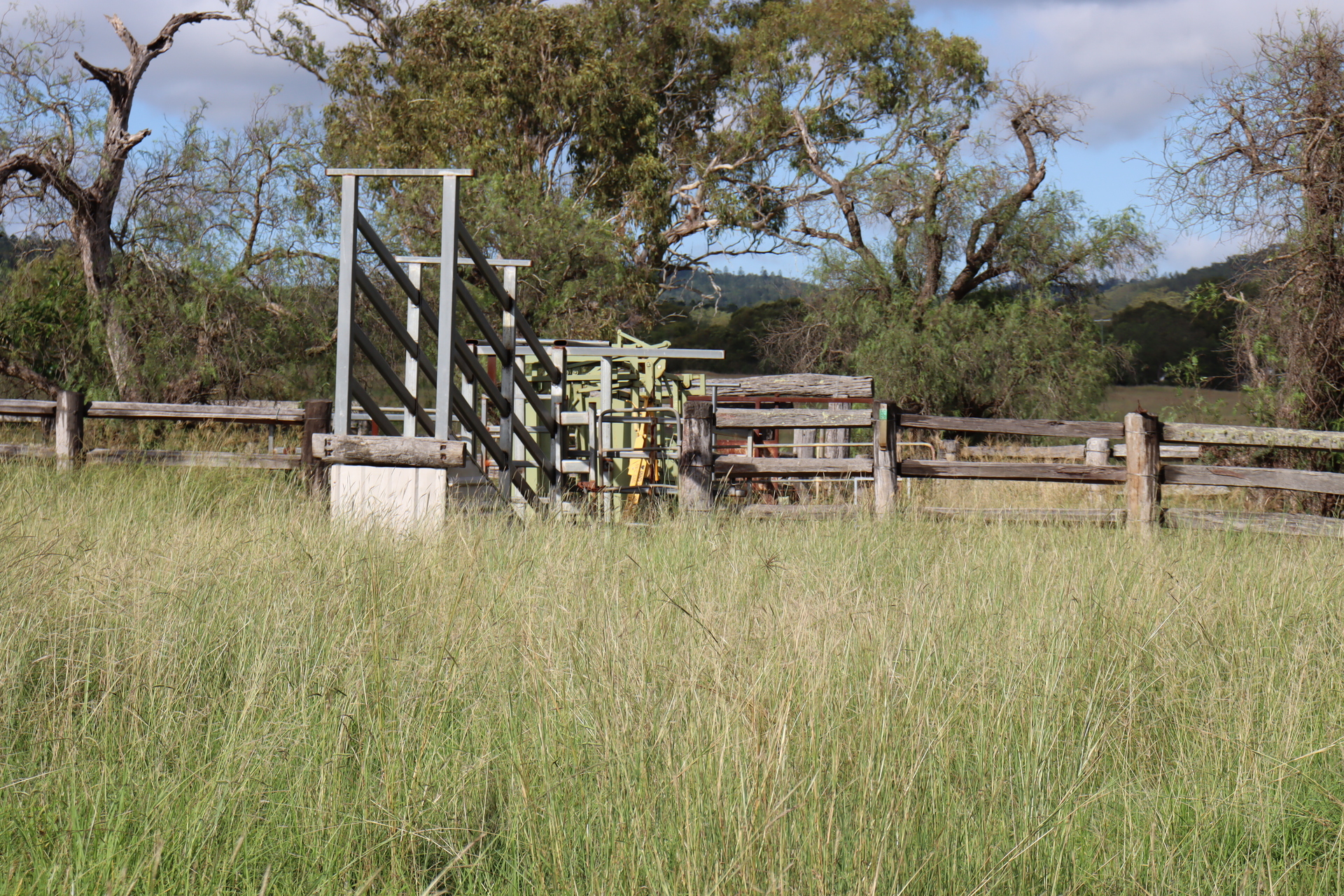 Solid timber yards with a cattle crush and loading ramp. Water connected to yards.